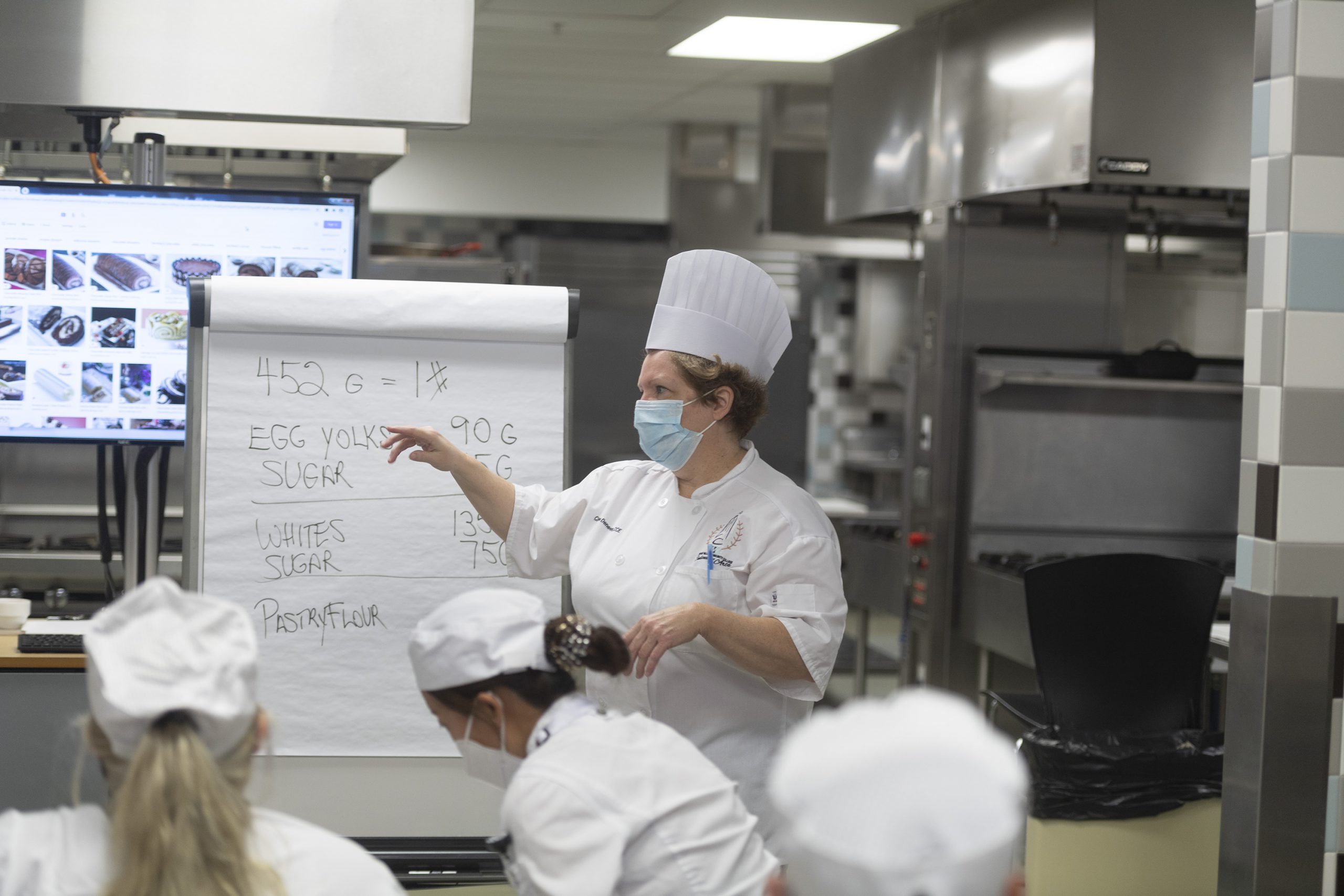Like automotive technology, culinary arts reduced class sizes, which also meant only one class could work in the kitchen at a time. Instructors used more videos, PowerPoints and online resources to help engage students in learning material. They still had labs in the kitchen, but they became more of a one-on-one interaction with the chef instructor, said Lampros Tzimas, associate professor of culinary arts and hospitality management. He added that about 60% of course time was completed in the campus kitchen.